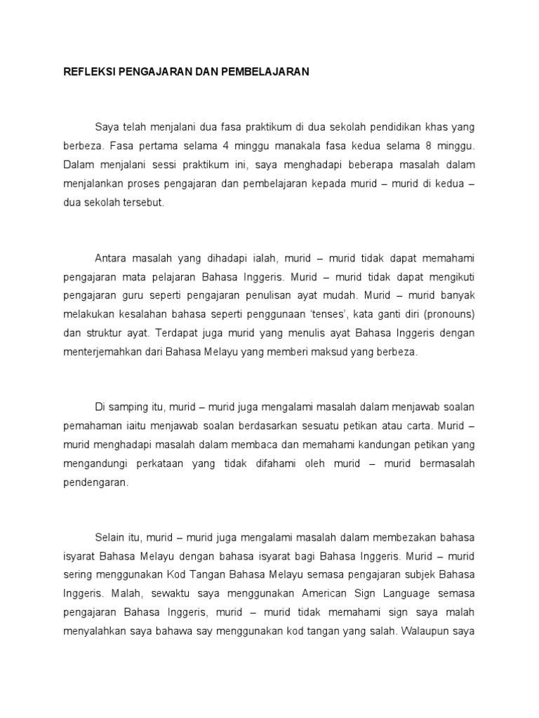 Refleksi Pengajaran Dan Pembelajaran Pdf